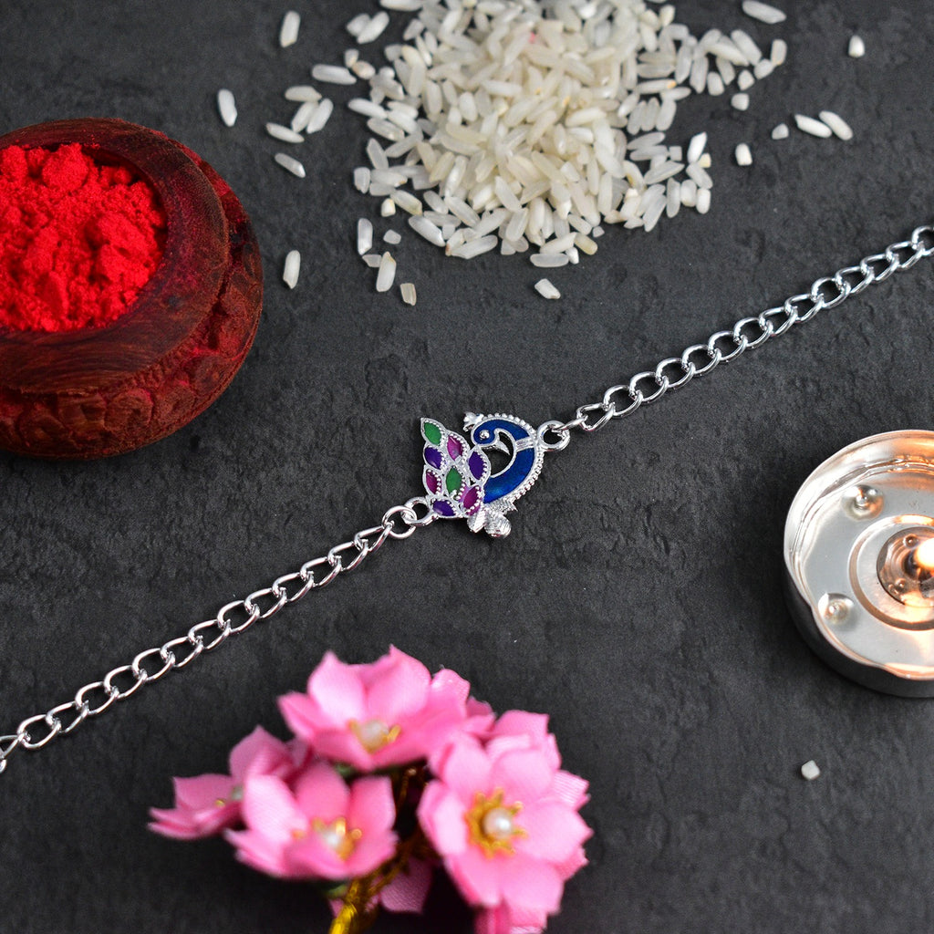 Honor the timeless bond between siblings with our intricately designed Rakhi. Crafted with care and elegance, this Rakhi blends traditional charm with modern aesthetics. Whether you're near or far, send your love and blessings with this exquisite thread of affection.