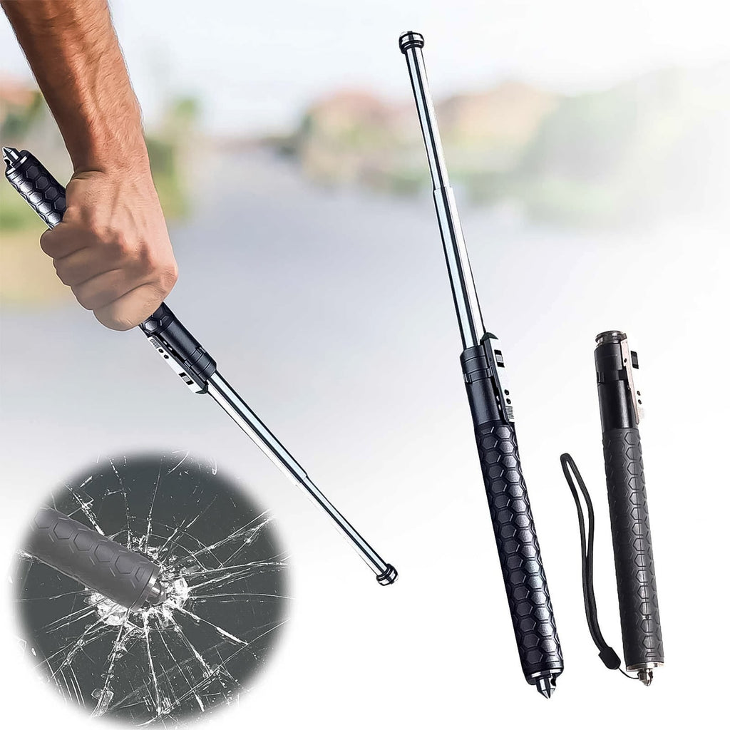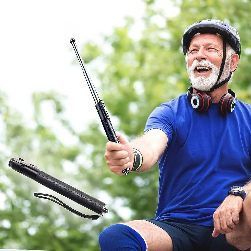 Foldable safety rod. Opens when you jerk your hand. Useful item for everyone, either in home, Best for ladies or girls for their safety. Just jerk your hand, it will open automatically. Can also be used for self-protection. Fits in one's pocket. Hand-strap makes more comfortable to grip.