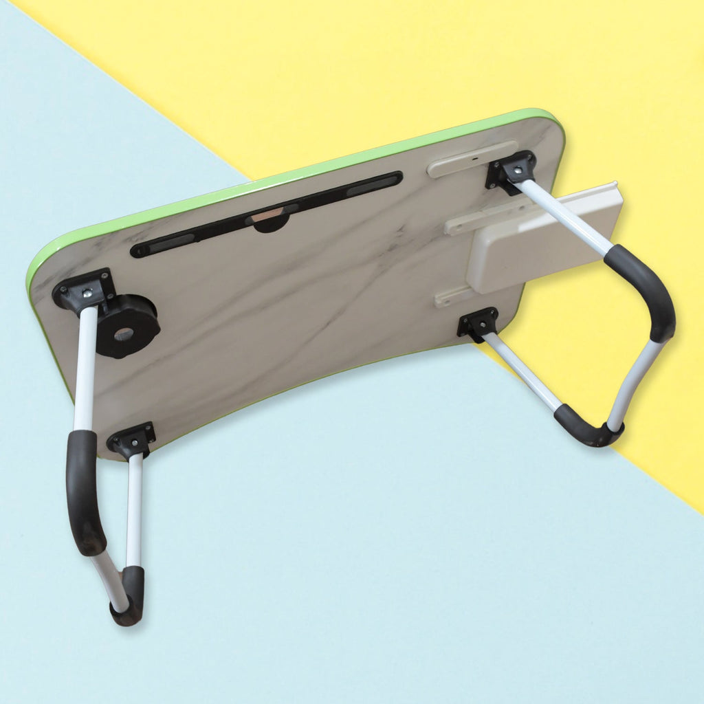 7892 MultiPurpose Study Table Foldable Portable Notebook Bed Lap Desk Tray Stand Reading Holder with Coffee Cup Slot, Drawer, Fan, USB Cable & Light for Breakfast, Reading & Movie Watching (1 Pc Mix Color)