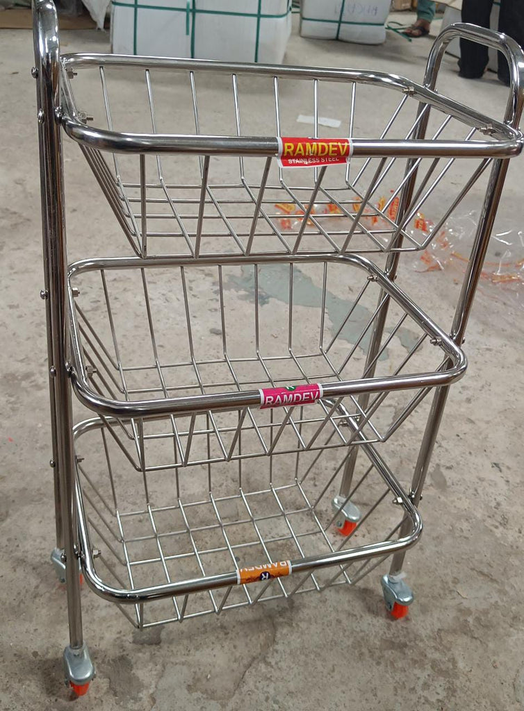 5981 Multipurpose 3 Layer Stainless Steel Fruit & Vegetable 4 Stand Kitchen Trolley |Fruit Basket |Vegetable Basket |Onion Potato Rack For Kitchen |Vegetable Stand For Kitchen (MOQ :- 4 Pc)
